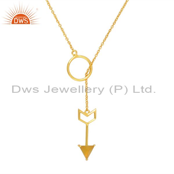 Circle Loop Silver Chain In Gold With Arrow Chalcedony Drop