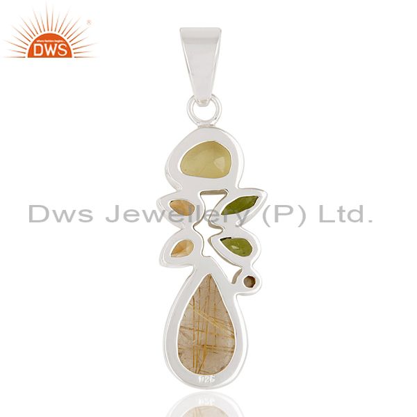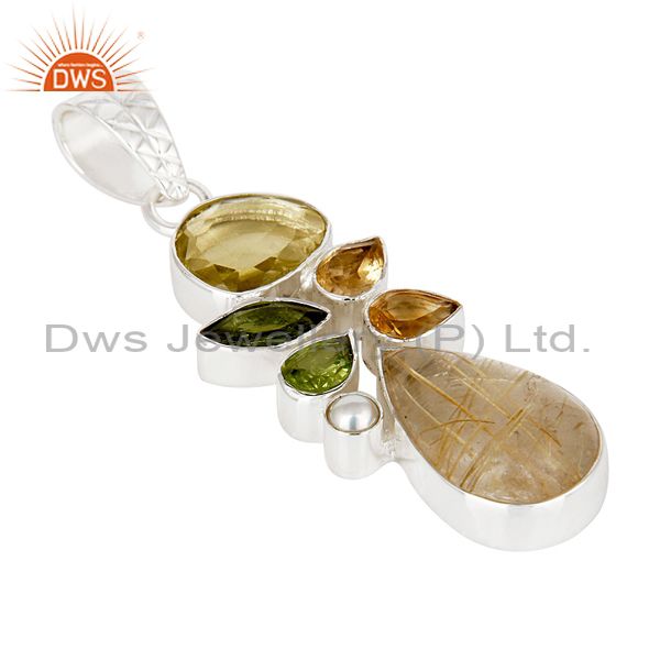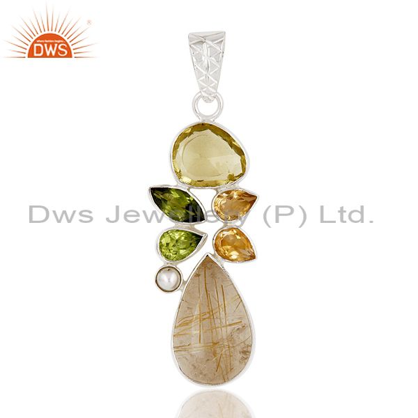 Citrine, Lemon Topaz, Peridot & Routile Golden Sterling Silver Pendant