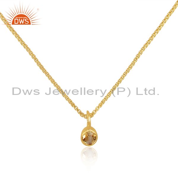 Citrine Set Gold On 925 Sterling Silver Pendant And Necklace