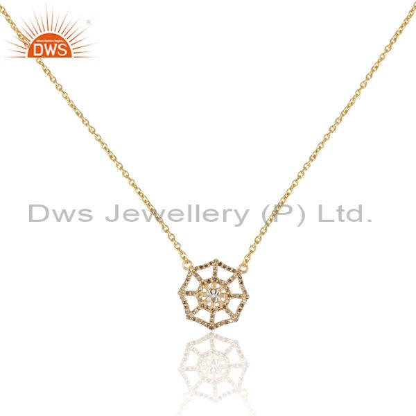Classic Diamond Set Round Solid 14K Gold Pendant And Chain