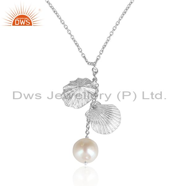 Conch Charm Sterling Fine Silver Pearl Gemstone Chain Pendant