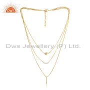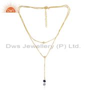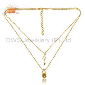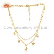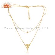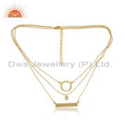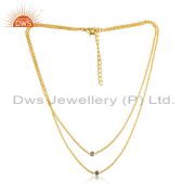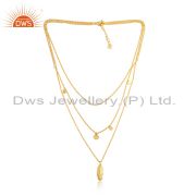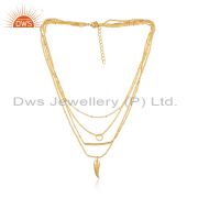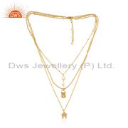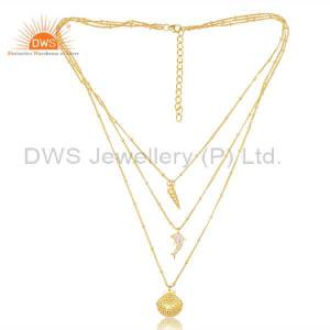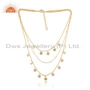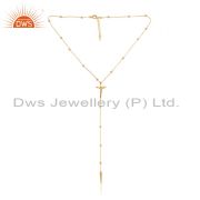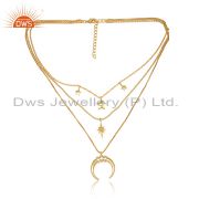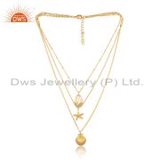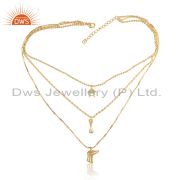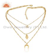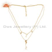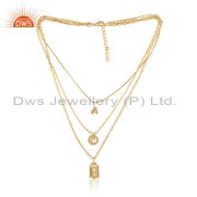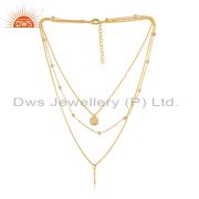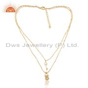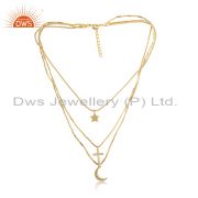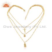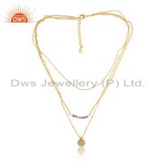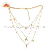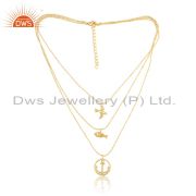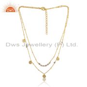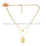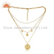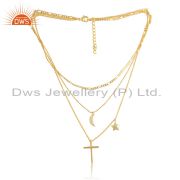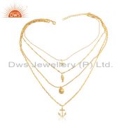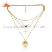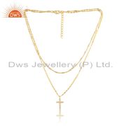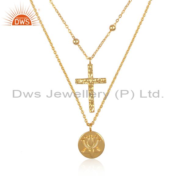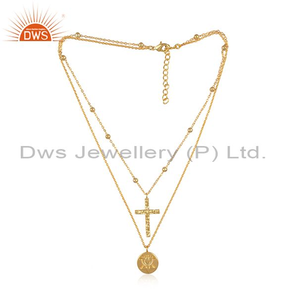 Cross And Round Charms Set Brass Gold Double Chain Necklace