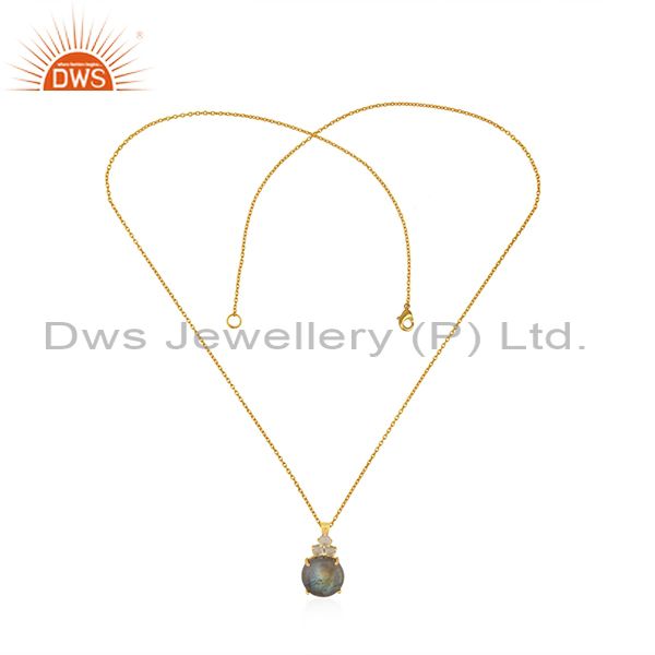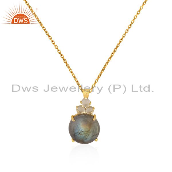 Crystal Quartz And Labradorite Gemstone Gold Plated 925 Silver Chain Pendant