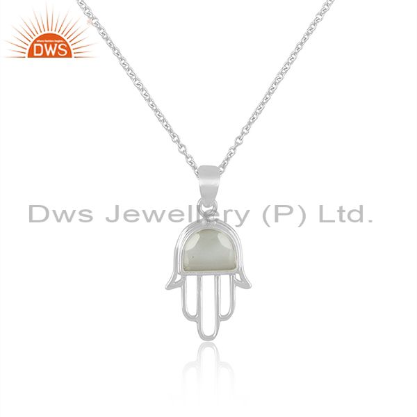 Crystal Quartz Coin Set Fine Silver Hamsa Pendant And Chain