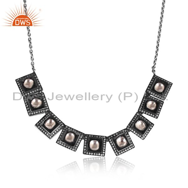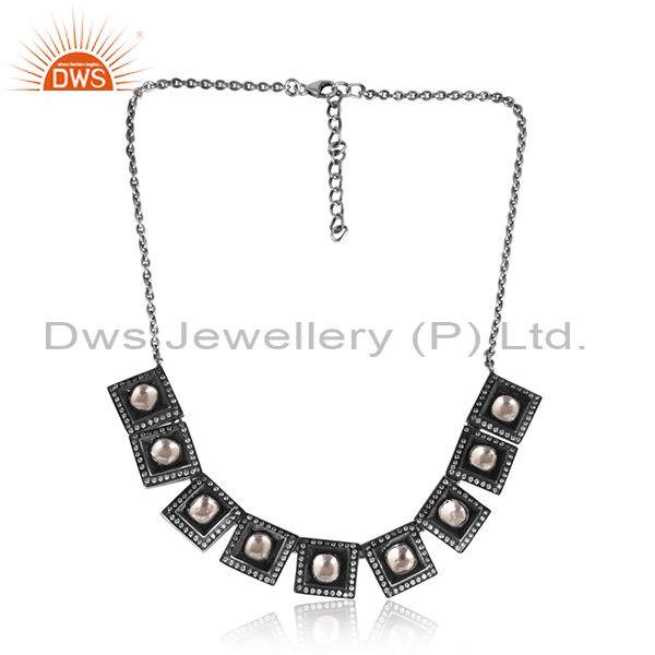 Crystal Quartz, CZ Handmade Oxidized Silver Boho Necklace