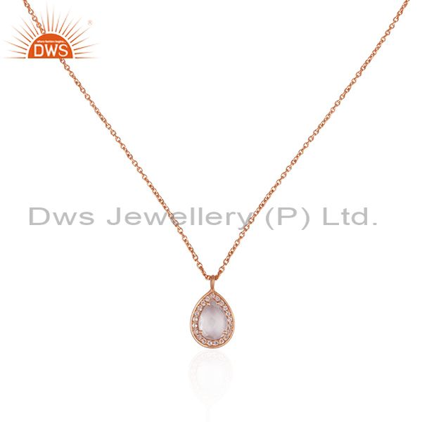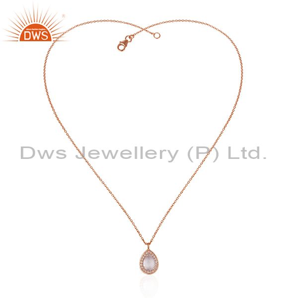 Crystal Quartz Gemstone Pendant Rose Gold Plated 925 Silver Chain Necklace
