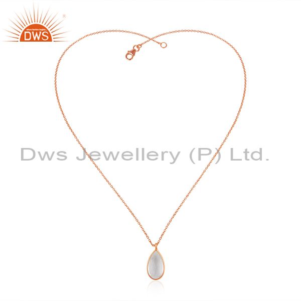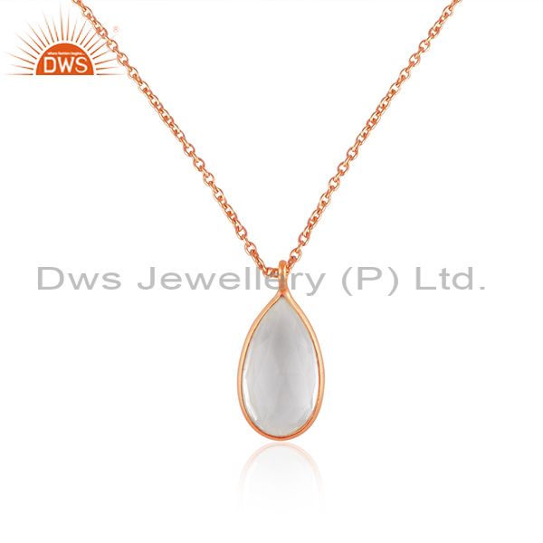 Crystal Quartz Rose Gold Plated 925 Silver Chain Pendant Manufacturer India
