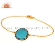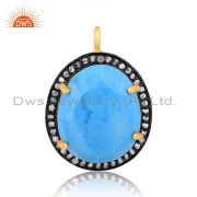 Cubic Zirconia & Matrix Turquoise 18K Gold Plated Designer Pendant Necklace