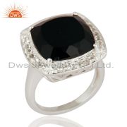 Cushion Cut Black Onyx Gemstone 925 Sterling Silver Pendant With White Topaz