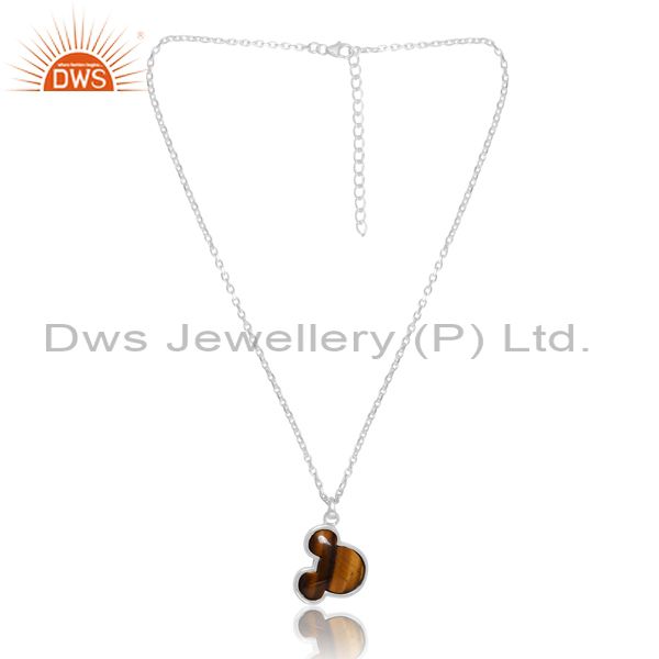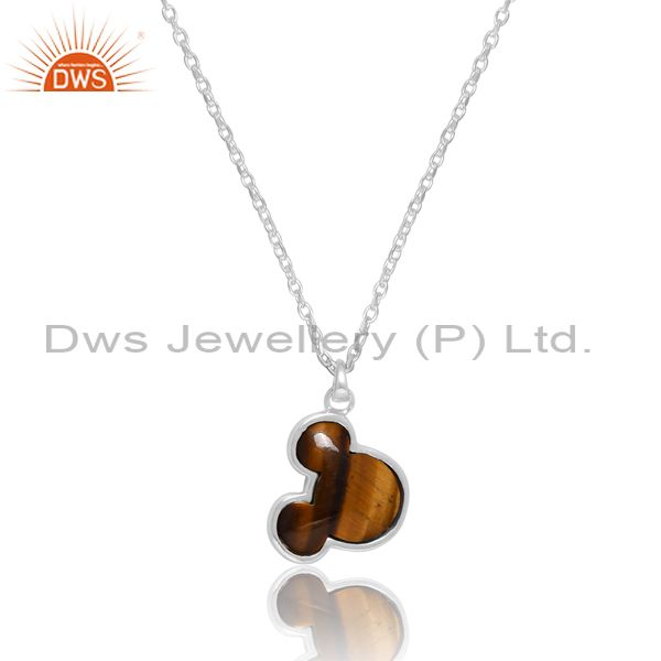 Cute Kids Tiger Eye Mickey Pendant And Plain Silver Chain