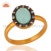 Cz & Aqua Blue Chalcedony Drop Fashion Pendant With Chain - Gold Plated Silver