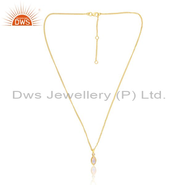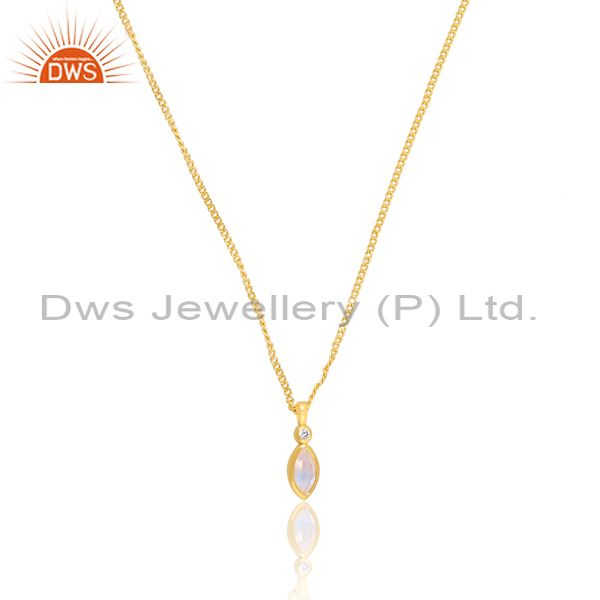 Cz And Rainbow Moon Stone Set 18K Gold On Silver Necklace