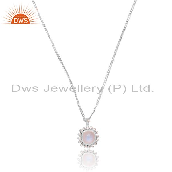 Cz And Rainbow Moon Stone Set Fine Silver Pendant And Chain