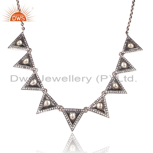 CZ, Crystal Quartz Set Oxidized Silver Ethnic Boho Necklace