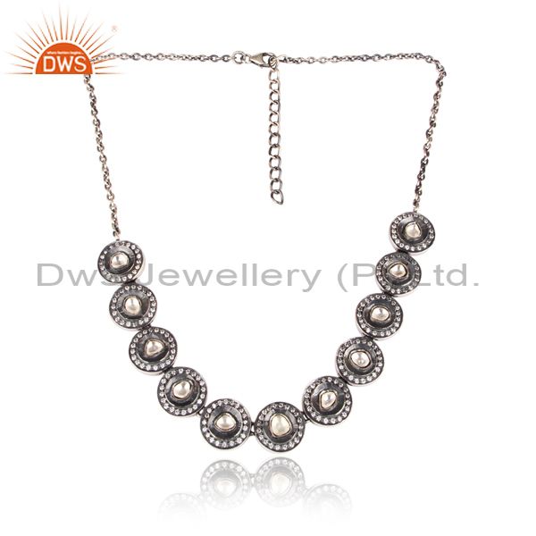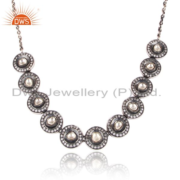 CZ, Crystal Quartz Set Oxidized Silver Round Charms Necklace