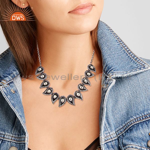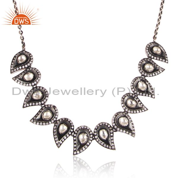 CZ, Crystal Quartz Set Oxidized Silver Traditional Necklace