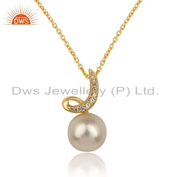 Cz Natural Pearl Gemstone Gold Plated 925 Silver Chain Pendant