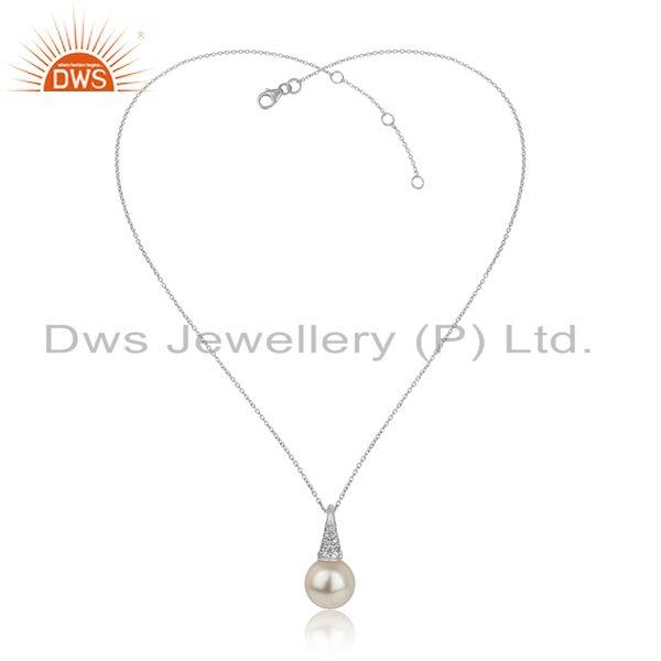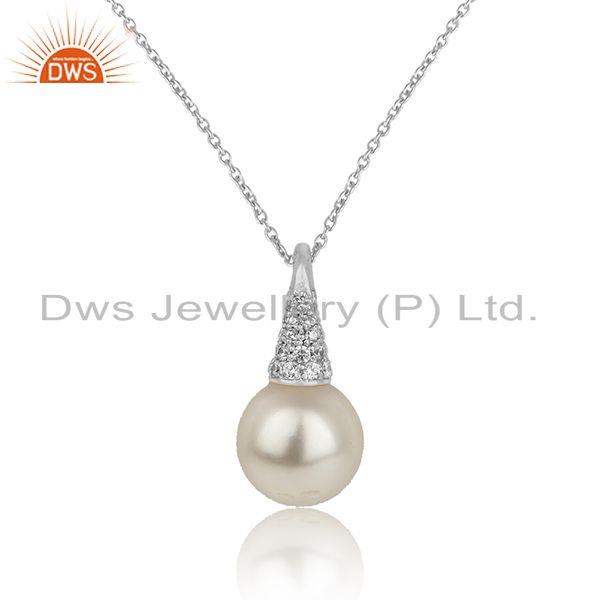 Cz Pearl Gemstone Designer Silver White Rhodium Plated Pendants
