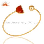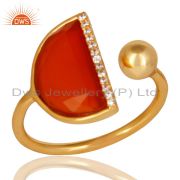 Cz Red Onyx Gemstone Gold Plated Silver Half Moon Chain Necklace