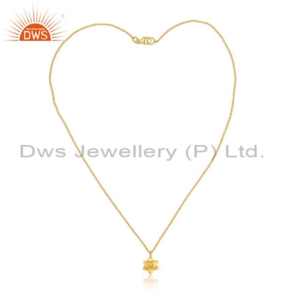 Cz Set Star Pendant And Gold On 925 Silver Handmade Chain