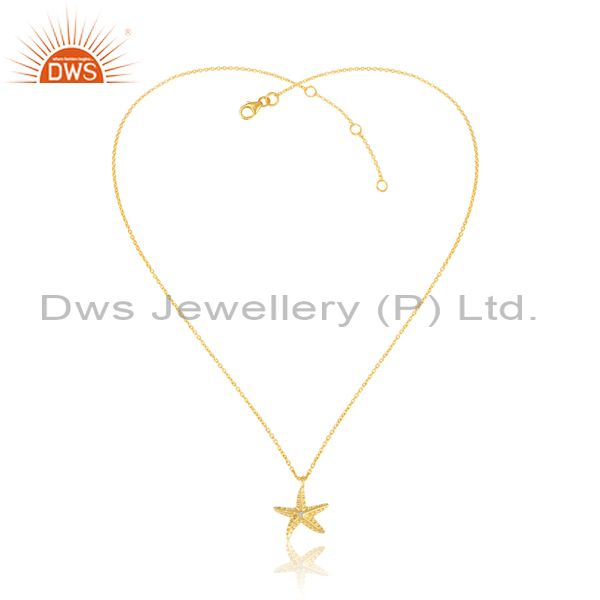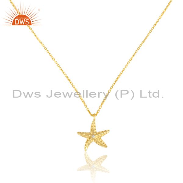 Cz Set Star Pendant With Gold On 925 Sterling Silver Chain