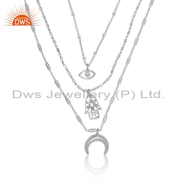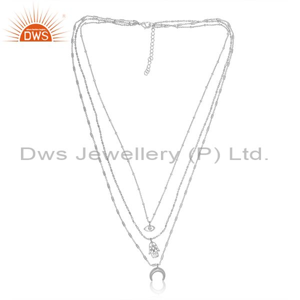 Cz Set Triple Chain Fine Brass Handmade Fancy Boho Necklace
