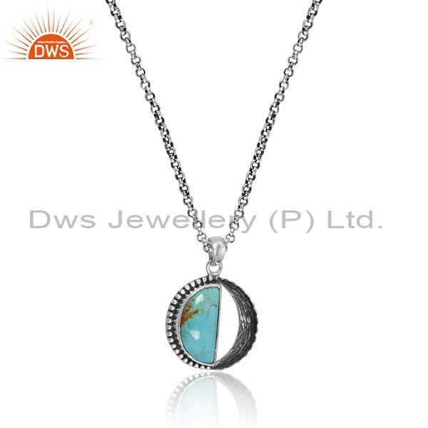D Shaped Kingman Turquoise Oxidized Silver Pendant And Chain