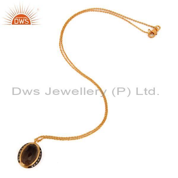 Designer 18K Gold Plated 925 Sterling Silver Smoky Quartz Gemstone Pendant