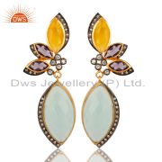 Designer 18K Gold Plated Yellow Moonstone And Chacholdony Pendant Necklace