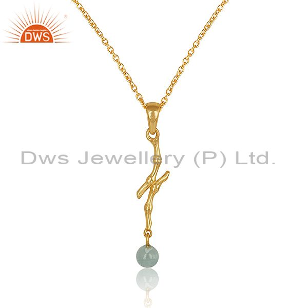 Designer Bamboo Textured Gold On Silver Blue Topaz Necklace