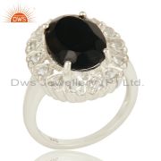 Designer Black Onyx And White Topaz Pendant Made In Sterling Silver