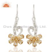 Designer Citrine Gemstone 925 Sterling Silver Solitaire Pendant With White Topaz