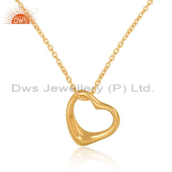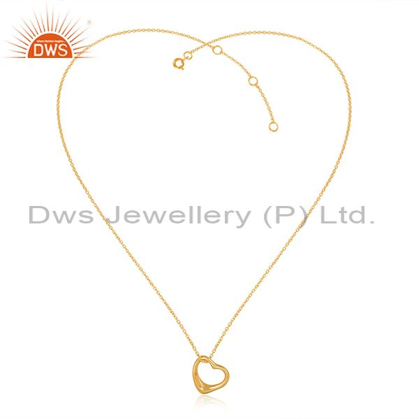 Designer Dainty Heart Pendant Necklace In Yellow Gold On Silver