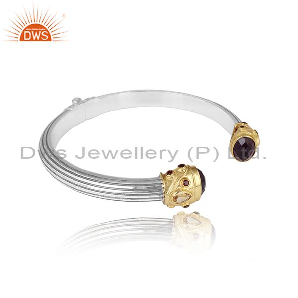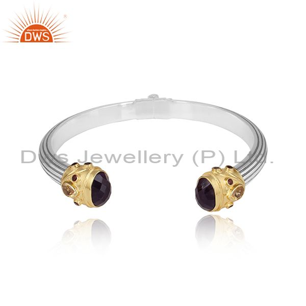 Designer Gold On Silver Choker With Amethyst, Citrine And Garnet