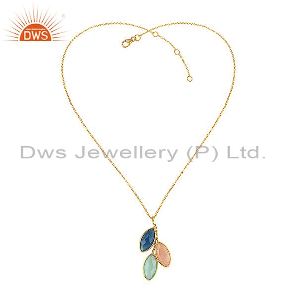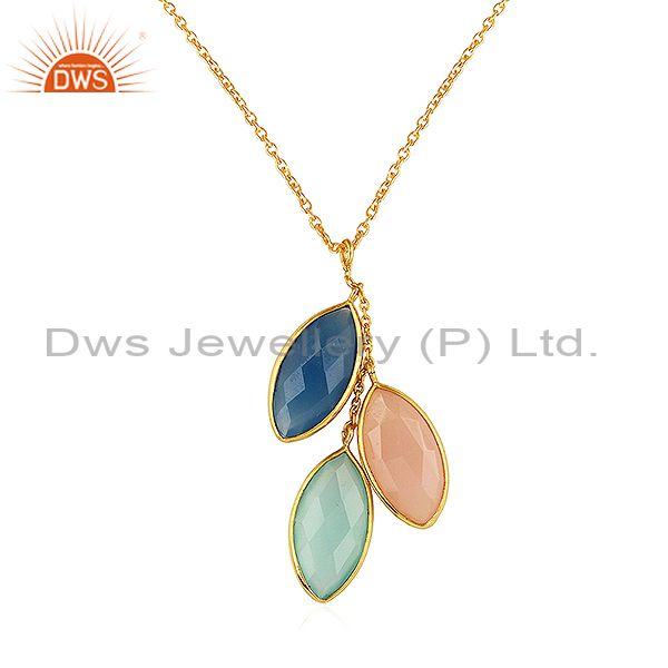 Designer Gold Plated 925 Silver Natural Three Gemstone Chain Pendant