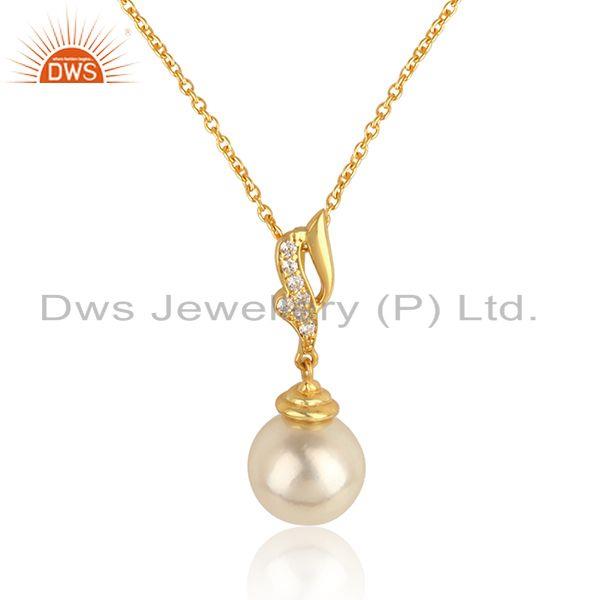 Designer Gold Plated Silver Girls Cz Pearl Gemstone Chain Pendant