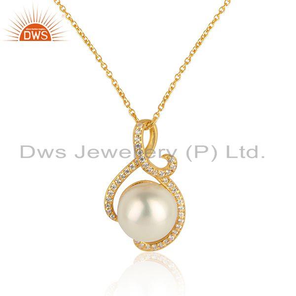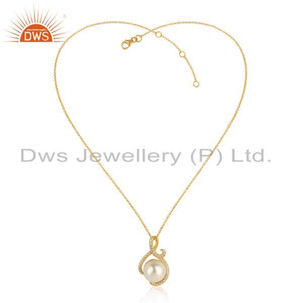 Designer Gold Plated Silver Natural Pearl Gemstone Chain Pendant