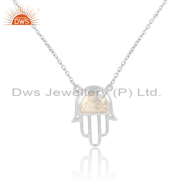 Designer Hamsa Hand Necklace in Silver 925 with Rainbow Moonstone