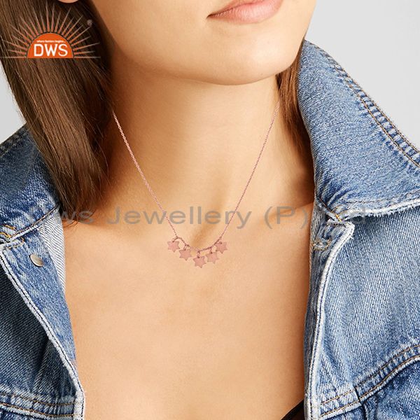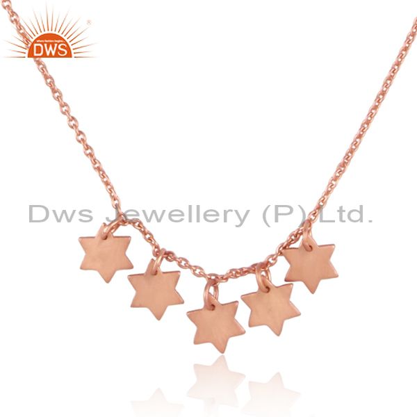 Designer Multi Star Charm Rose Gold On Silver 925 Necklace