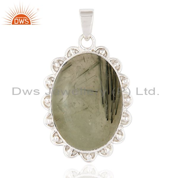 Designer Natural Prehnite Gemstone Solid 925 Sterling Silver Pendant