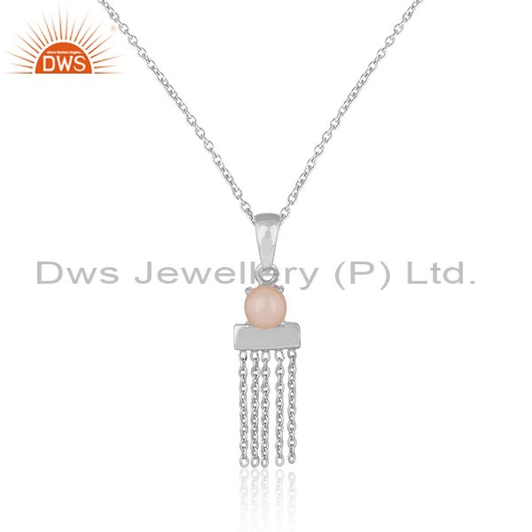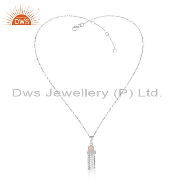Designer Sterling Silver Bar Chain Necklce with Pink Opal