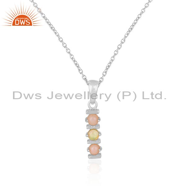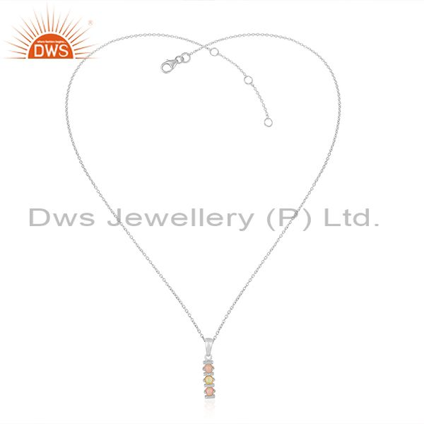 Designer Sterling Silver Bars Necklace with Pink and Ethiopian Opal