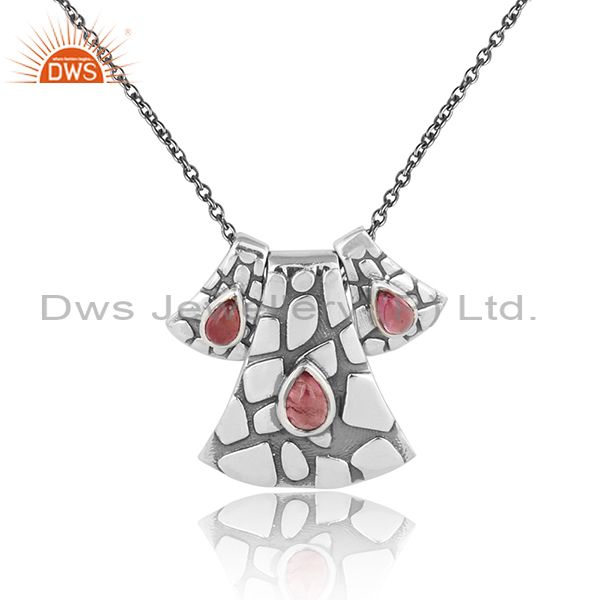 Designer Textured Necklace in Oxidized Silver and Pink Toulrmaline