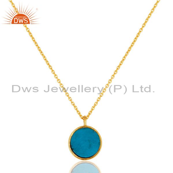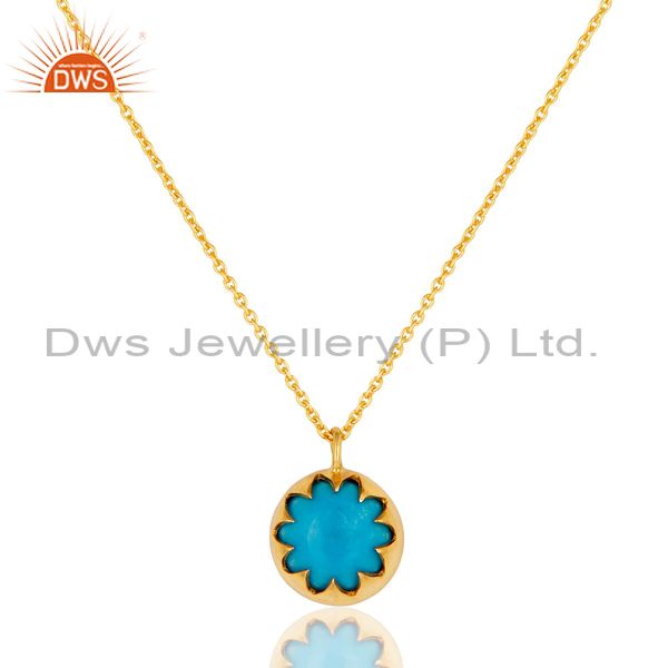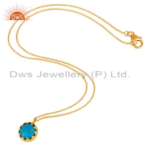 Designer Turquoise Gemstone Pendant Made In 18K Gold Over Sterling Silver