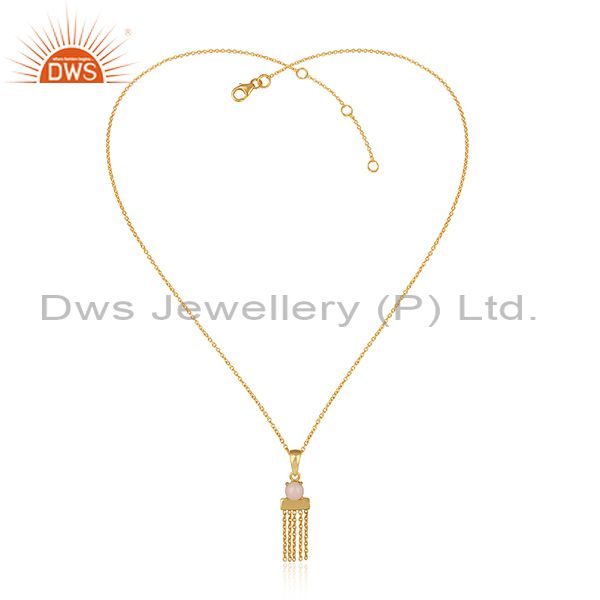 Designer Yellow Gold on Silver Bar Chain Necklce with Pink Opal