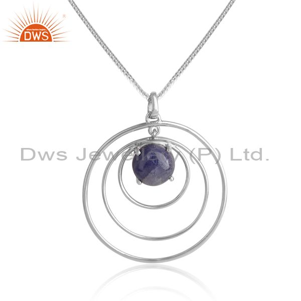 Disc Design White Rhodium Plated 925 Silver Tanzanite Necklaces