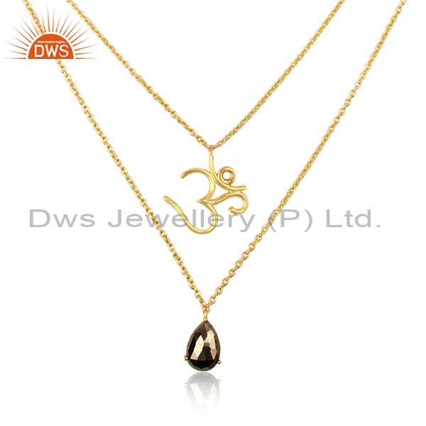 Double Layerd OM Necklace in Yellow Gold On Silver 925 and Pyrite