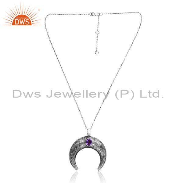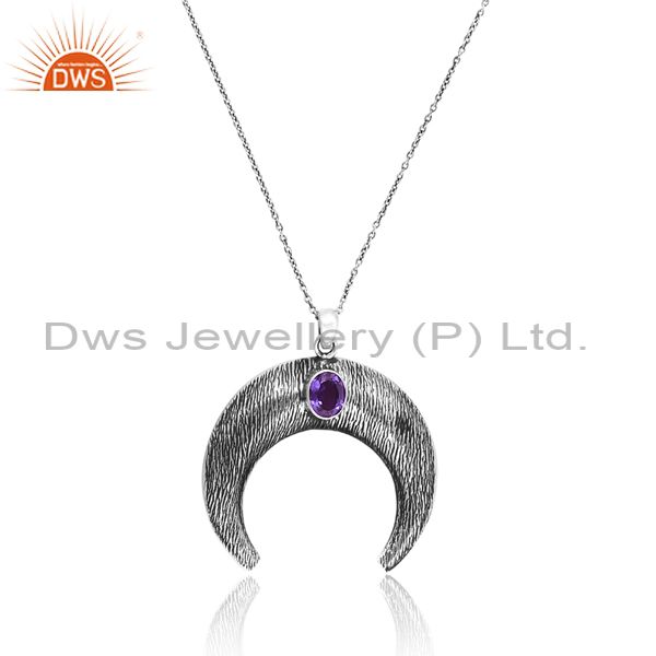 Doublet Amethyst Quartz On Silver Chain & Half Moon Pendant