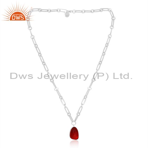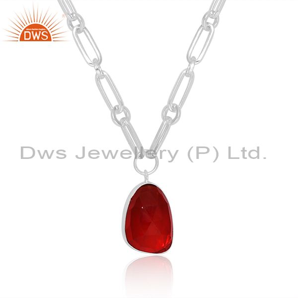 Doublet Garnet Quartz Set Fine 925 Silver Pendant And Chain