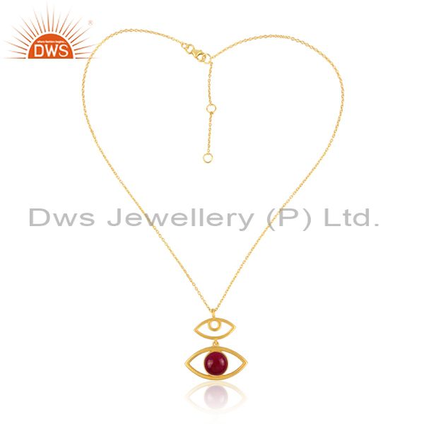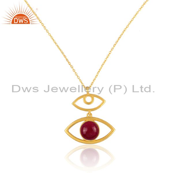 Dyed Ruby Set Evil Eye Pendant And Gold On 925 Silver Chain